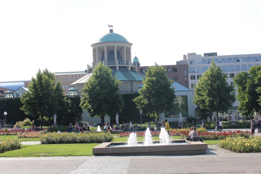 We walked a decent distance to our hostel to save on cab fair from the train station, The Alexander I believe it was called, which had barely anyone there. We got a decent room with 3 beds and some solid wifi, and then hit the main area of the city since we had planned this stop to be our shortest aside from London. Luckily for us, The best sights of Stuttgart are all concentrated around a strip of parks around the center of the city. We walked around several large park areas with monuments and cool medieval looking buildings. The city kind of sits in a valley, so on either side of the city you could see residential buildings on the hills. Impressive palace style buildings and gardens lined the center of Stuttgart, and the area was fairly busy with people enjoying the park areas. A jazz band was playing, and the song we heard them play was ‘Everybody Wants to Be a Cat’, which I found particularly amusing. They sang the lyrics in english. A lot of the shops down the main commercial boulevard were closed because this was a Sunday. But we found a nice German restaraunt and had gourmet brats, potato salad, salad, and of course a nice German beer. I also had a small milkshake desert. We then went to a Gelatto place where I got another milkshake, which for the price of 5 euro was an absolute rip offs. They were still delicious, if overpriced. I saw an artist doing some fantastic street art on our way back to the hostel.